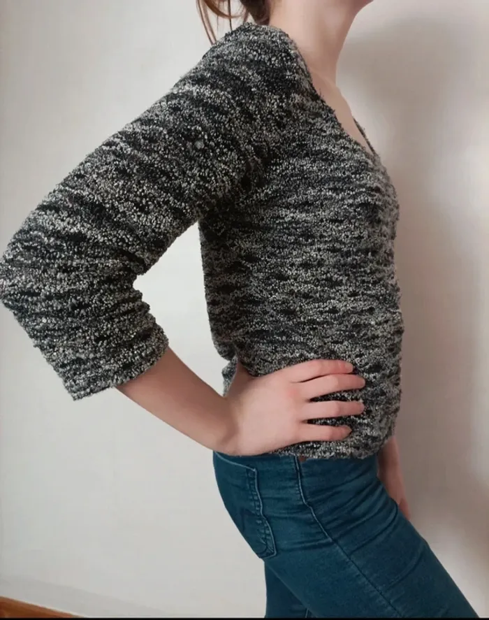 Pull court manches 3/4 gris chiné Camaïeu taille 2 très bon état #valkyetcie_36femme #pull36femme #camaieu36