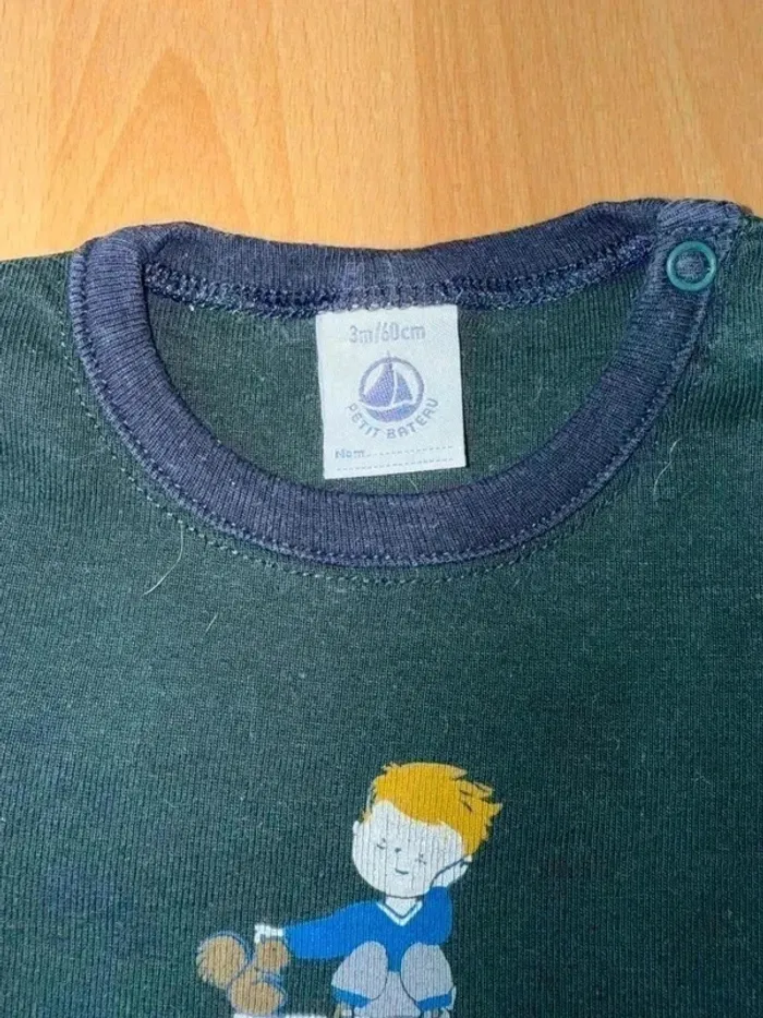 T-shirt Petit Bateau manches longues vert foncé, taille 3 mois - Très bon état - photo numéro 3