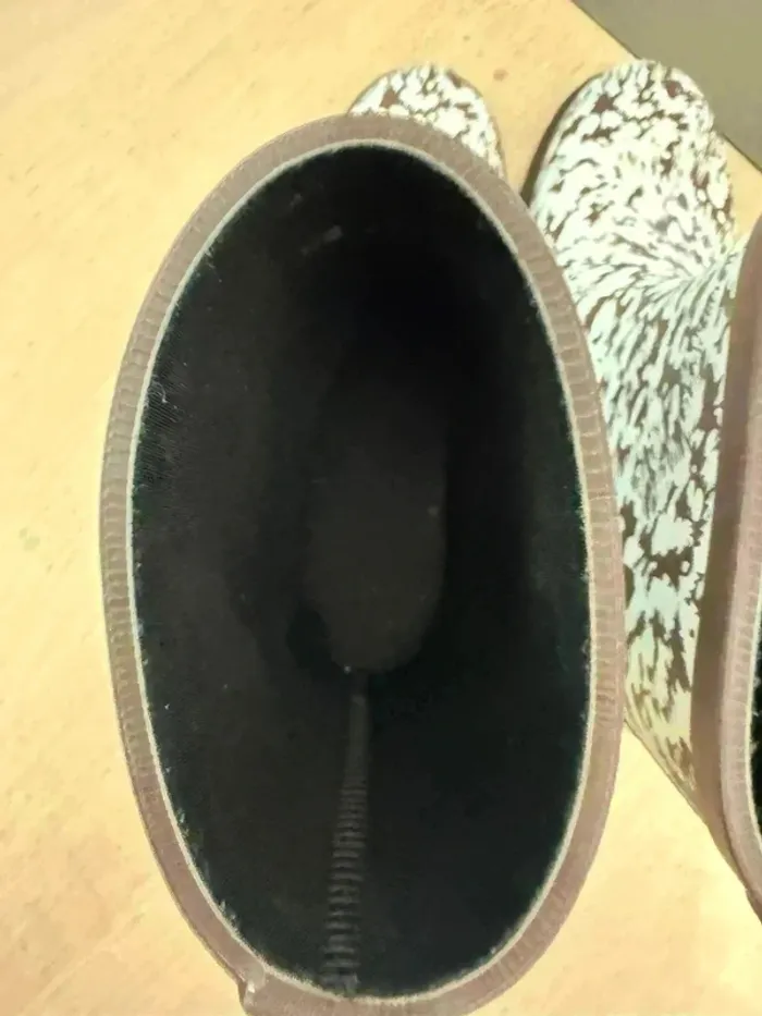 Superbe paire de bottes de pluie de la marque Aigle, pointure 36. Ces bottes sont neuves, jamais portées, mais vendues sans étiquette (provenance d'un déstockage). Elles arborent un motif original, mélange d'abstrait et de taches façon animalier (léopard, zèbre revisité) dans les tons marron, blanc et beige. La semelle et le liseré supérieur sont d'un joli marron foncé. Fabriquées par Aigle, ces bottes sont gage de qualité, de durabilité et d'imperméabilité. Idéales pour les journées pluvieuses, les promenades en forêt, le jardinage ou simplement pour un look tendance et décalé. Elles apporteront une touche d'originalité à n'importe quelle tenue ! Envoi soigné et rapide. N'hésitez pas à me contacter pour toute question ou si vous souhaitez des mesures supplémentaires ! #bottes #bottesdepluie #aigle #bottescaoutchouc #neuves #sansEtiquette #taille36 #pointure36 #imperméable #pluie #jardinage #promenade #foret #looktendance #original #imprime #animalier #abstrait #marron #blanc #beige #chaussuresfemme #modefemme #vintedfrance #secondemain #neuf #occasion #dressingshoes #bottesaigle #qualite #durable #rainboots #wellies #waterproof #aiglerainboots #chic #style #fashion #chaussures #boots #outdoor #nature #campagne #citytrip #automne #hiver #printemps #été #accessoiremode #musthave #bonplan #petitprix #vintedaddict #chaussureneuve #marquefavoris #madeinfrance #casualchic #confort #resistant #allweather