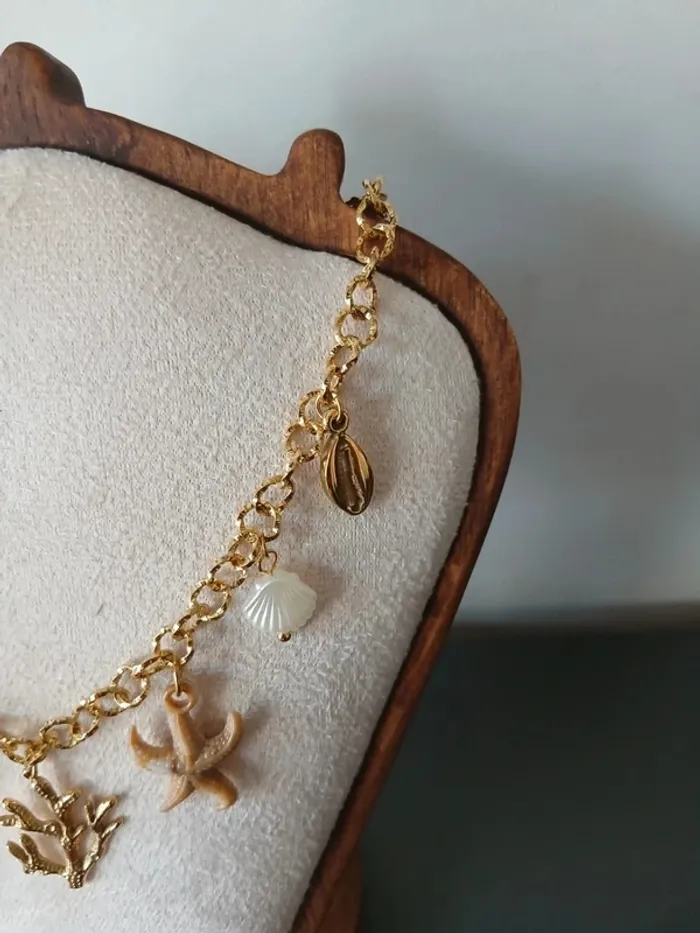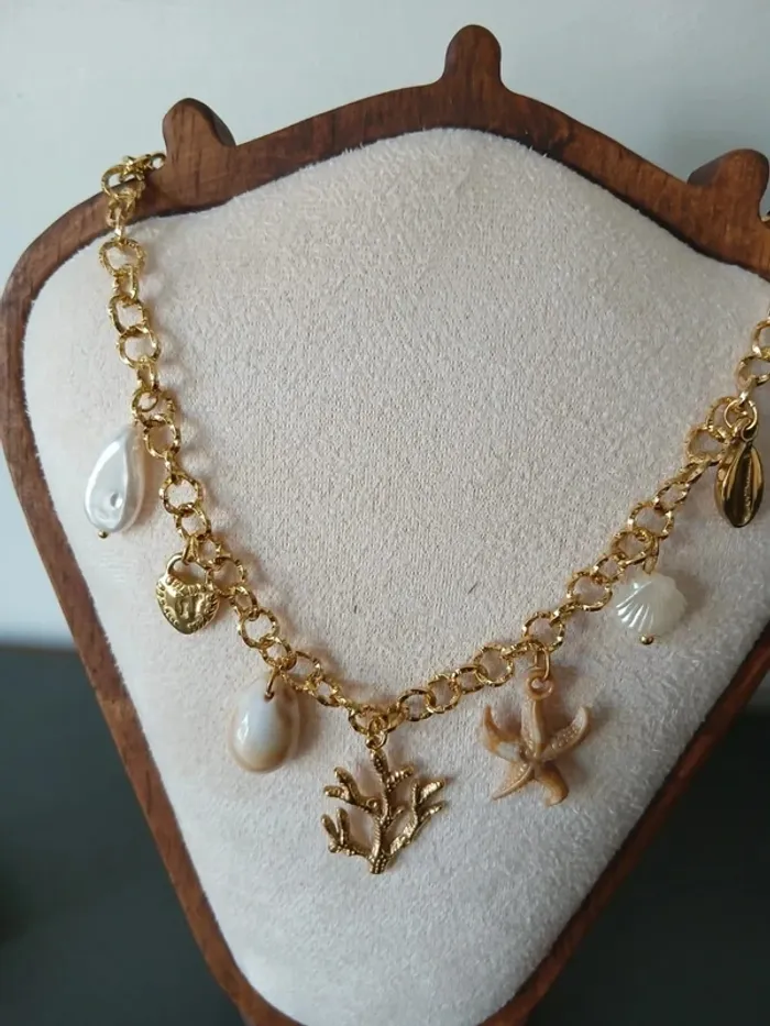 Collier or acier inoxydable doré corail coraux étoile de mer coquillage summer porcelaine nacre