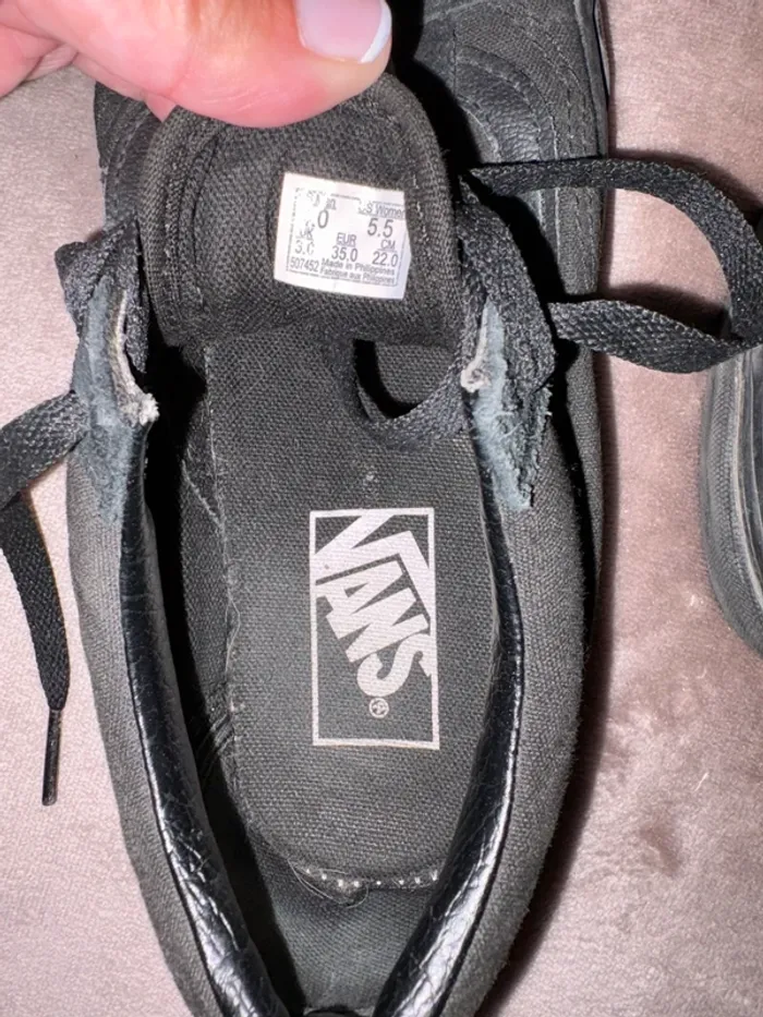Baskets Vans taille 35 couleur noir. Petit nettoyage à prévoir mais reste en bon état. #vans #basketsvans #vansfemme #basketsvansfemme #vanstaille35 #tennisfemme ..leeloo..