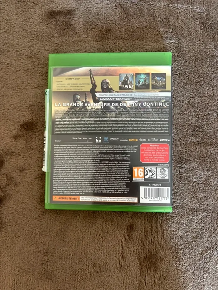 jeu Destiny - le roi des corrompus pour Xbox One. Il s'agit d'un jeu d'action-aventure passionnant dans l'univers de Destiny. Le disque est en parfait état et le jeu fonctionne parfaitement. - Titre : Destiny - le roi des corrompus - Plateforme : Xbox One - Genre : Action-aventure - Édition : Légendaire - Langue : Français - Notation : 16+