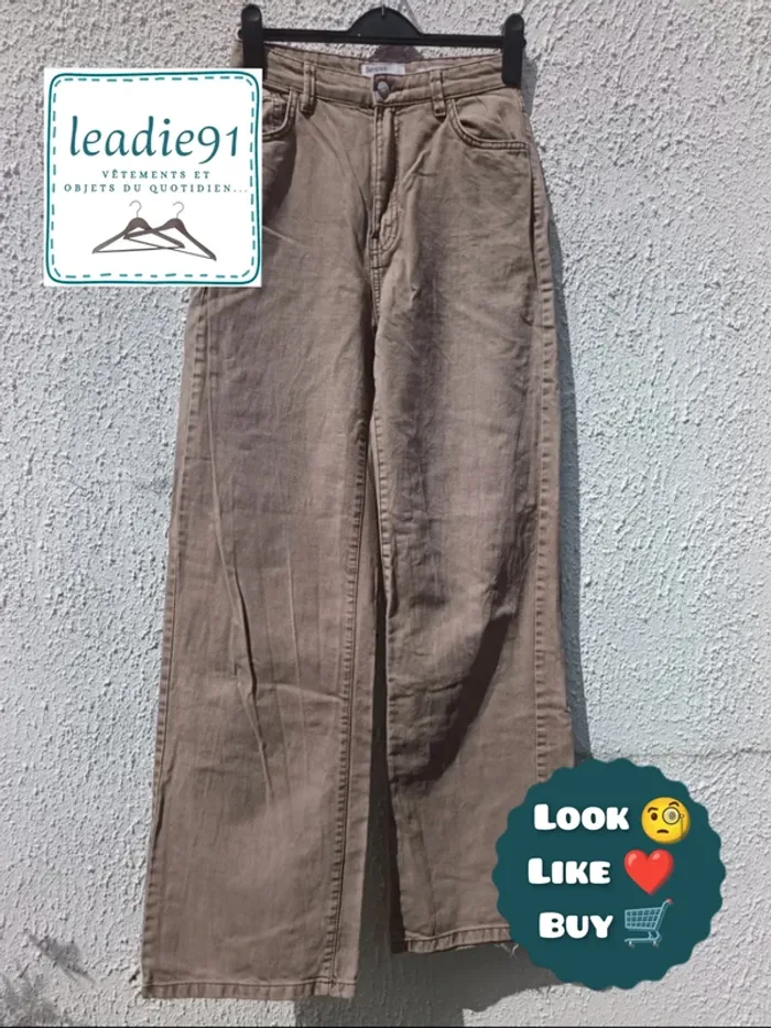 📃 𝐃𝐞́𝐭𝐚𝐢𝐥𝐬 : pantalon jeans à jambes larges, forme wide leg, poches, passants ceinture, fermeture zippée et bouton