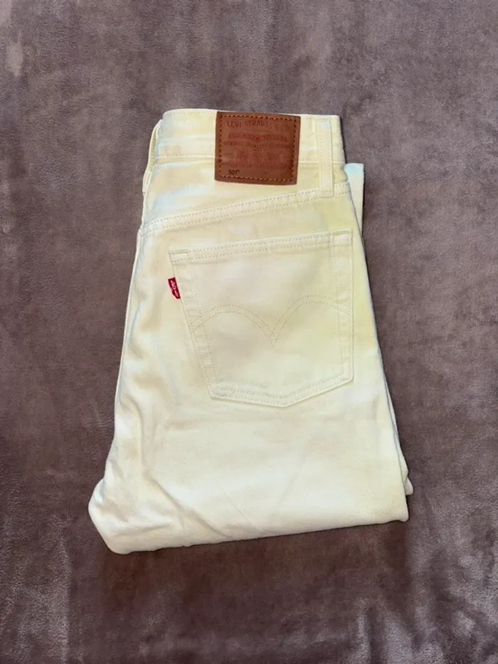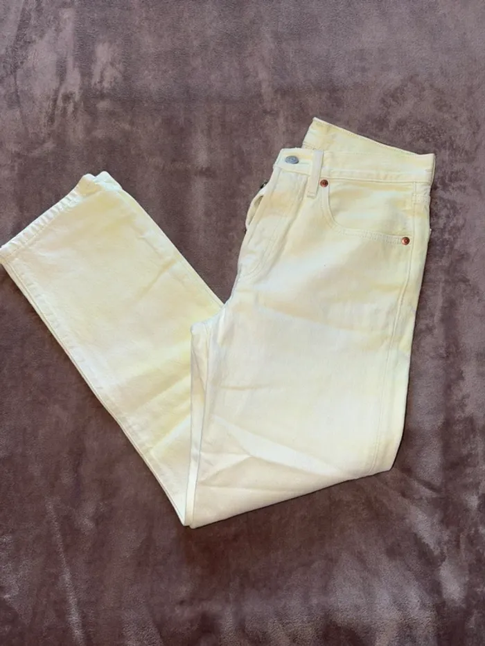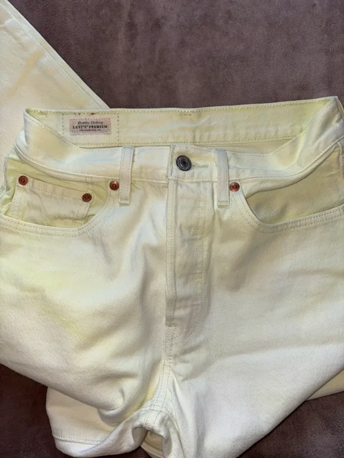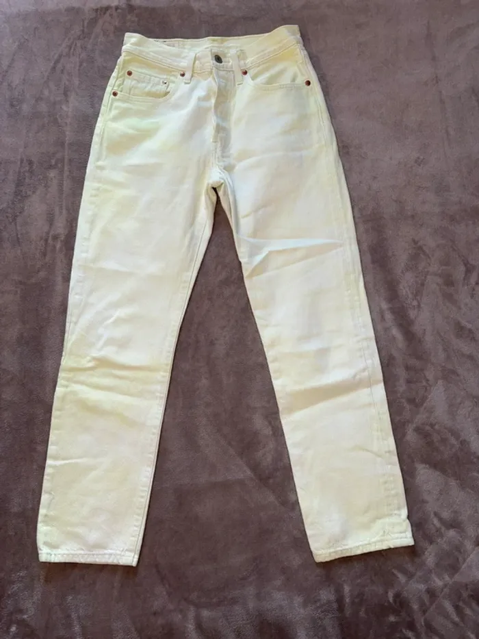 Jean Levi’s 501 jaune clair fille taille W26 L28 en bon état. Correspond à un taille XS #levis #levis501 #jeanlevis #femmetaillexs ..sc,.