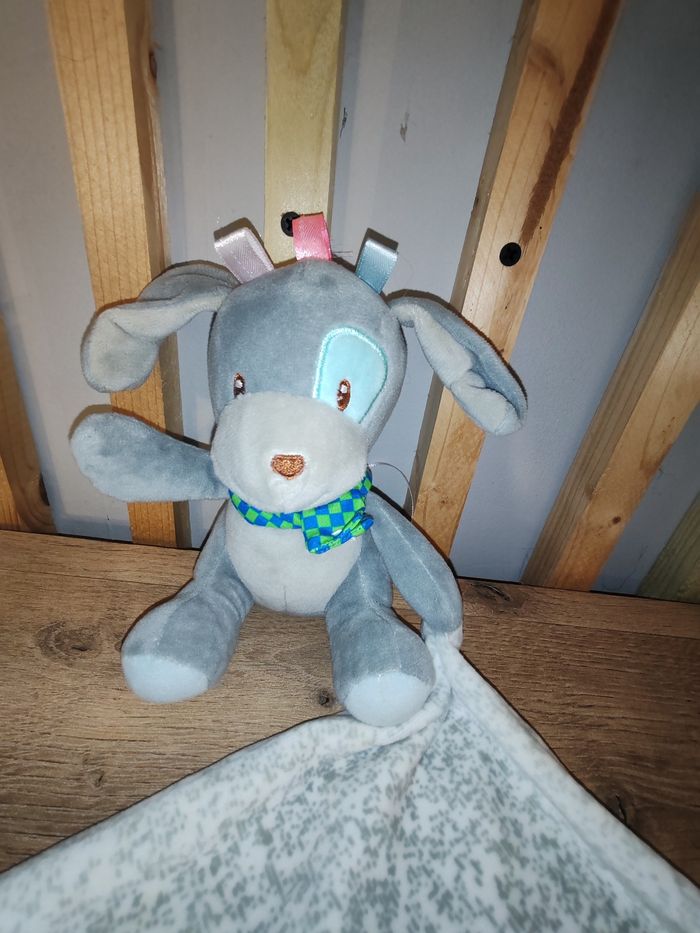 Chien gris super copain Avec son grand mouchoir trèfle vert Tbe Étiquette marque présente 13.90 euros Envoi en relais