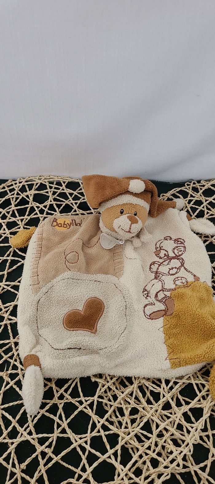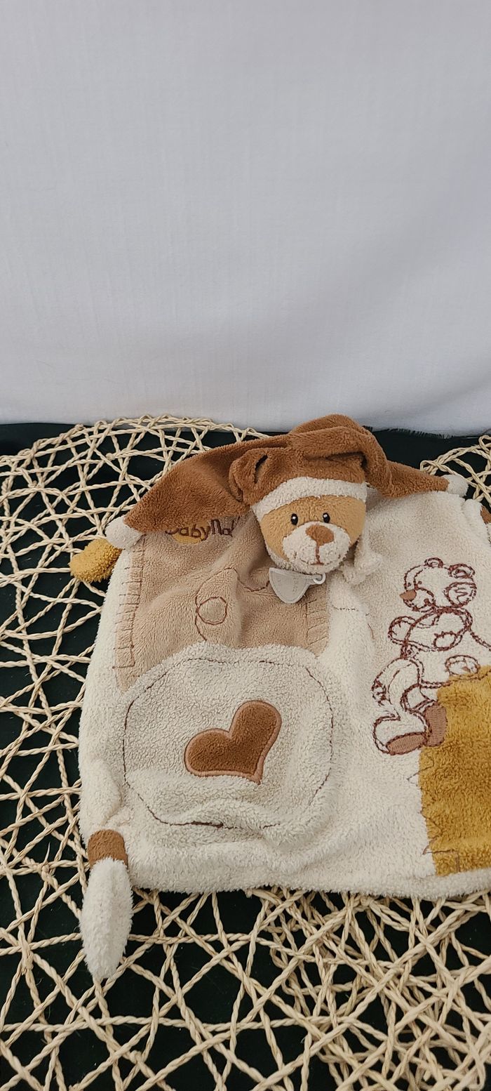 Doudou Plat Baby Nat Ours Marron Ecru Blanc Beige Coeur Bonnet 2 Pointes - photo numéro 1
