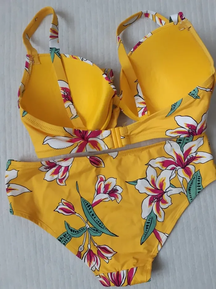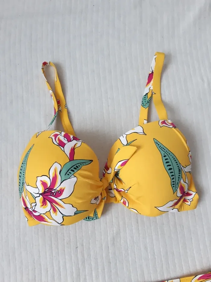 Maillot de bain 2 pièces Jaune à motif fleurs Soutiens-gorge 90E Culotte taille 38 #anthonyagnes_femme38
