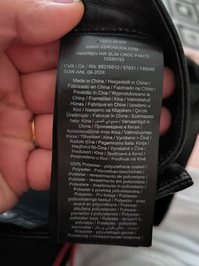 Pantalon neuf avec étiquette de la marque Vero Moda, modèle VMWREN HW SLIM CROC PANTS. Coupe slim taille haute, matière texturée effet croco ultra stylée. Idéal pour un look chic, rock ou soirée. Très flatteur et original. 🔹 Taille : S / 34 🔹 Couleur : Noir 🔹 État : Neuf, jamais porté, étiquette encore attachée 🔹 Matière : 100% polyester avec revêtement en polyuréthane 💎 Texture effet croco très tendance 💎 Taille haute qui allonge la silhouette 💎 Facile à associer avec un top simple ou une chemise habillée 📦 Envoi rapide et soigné Vous pouvez voir tout mon 34 en cliquant ici 👇 #JLA34 21/57