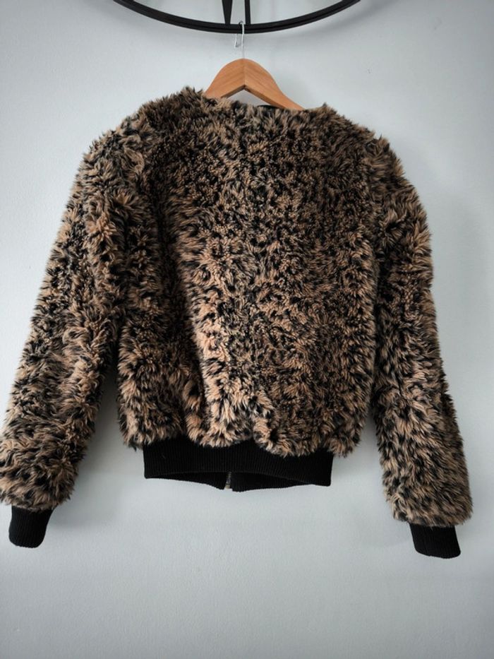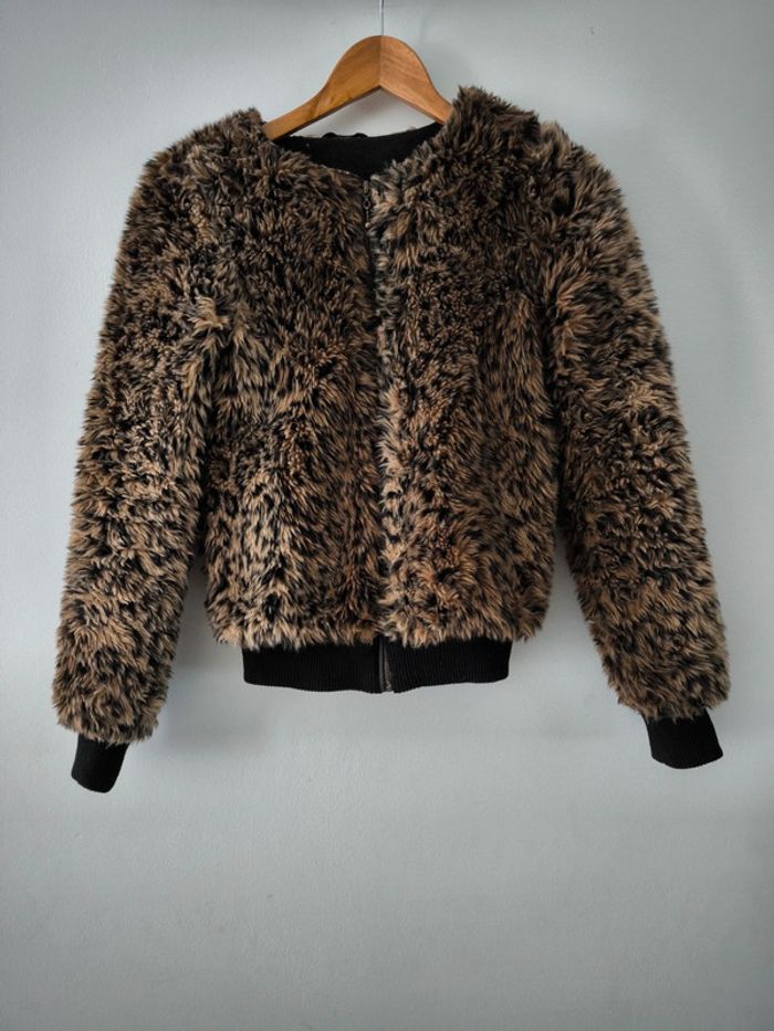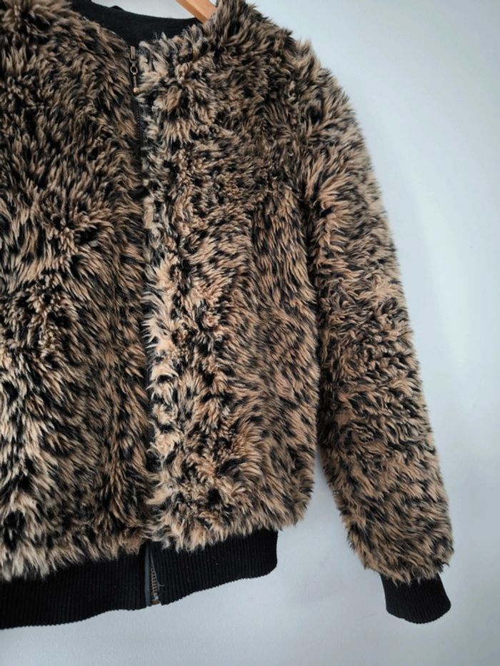 Plongez dans le confort et le style avec cette superbe veste en fausse fourrure marron aux nuances naturelles, effet pelage animal léopard .Fermeture éclair à l’avant, poignets côtelés noirs pour un look moderne et cosy. Doublure intérieure noire, douce et agréable à porter.