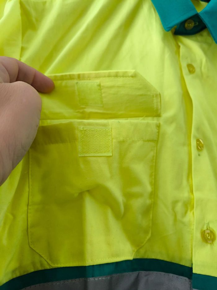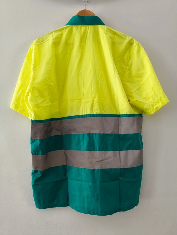 Pensée pour conjuguer fonctionnalité et visibilité, cette chemisette de travail affiche une coupe droite confortable et des coloris contrastés. Elle est idéale pour les environnements professionnels où praticité et apparence soignée sont de mise. - État : neuve - Coloris : empiècements jaunes en haut, vert foncé sur la base avec rayures grises horizontales - Poches : deux poches poitrine à rabat, parfaites pour garder stylos ou petits outils à portée - Col : classique, structure renforcée pour une tenue nette - Dimensions : - Aisselle à aisselle : 57 cm - Épaule à épaule : 48 cm - Longueur : 74 cm #JLAl 18/80