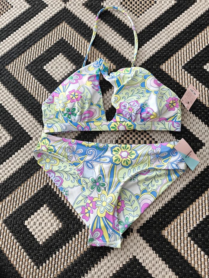 Envie d’un look estival pétillant ? Ce bikini deux pièces Ardene en taille S est fait pour vous ! - 🌸 Motif : Imprimé floral multicolore (rose, vert, bleu, jaune) sur fond clair, parfait pour illuminer les journées ensoleillées - 👙 Haut : Triangle classique avec bretelles ajustables et fermeture clip dans le dos, pour un maintien sur-mesure - 🩱 Bas : Culotte taille basse assortie, coupe flatteuse et confortable - 🧵 Matière : Douce, légère et extensible – idéale pour bronzer ou plonger - 🏷️ État : Neuf, jamais porté, encore avec étiquette Vous pouvez voir tous mes maillots de bain en 36 en cliquant ici 👇 #JLAmaillot36 #JLA36 24/5