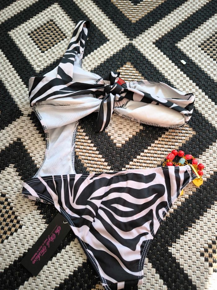 Maillot de bain zébré fond beige taille S 36 neuf - photo numéro 4