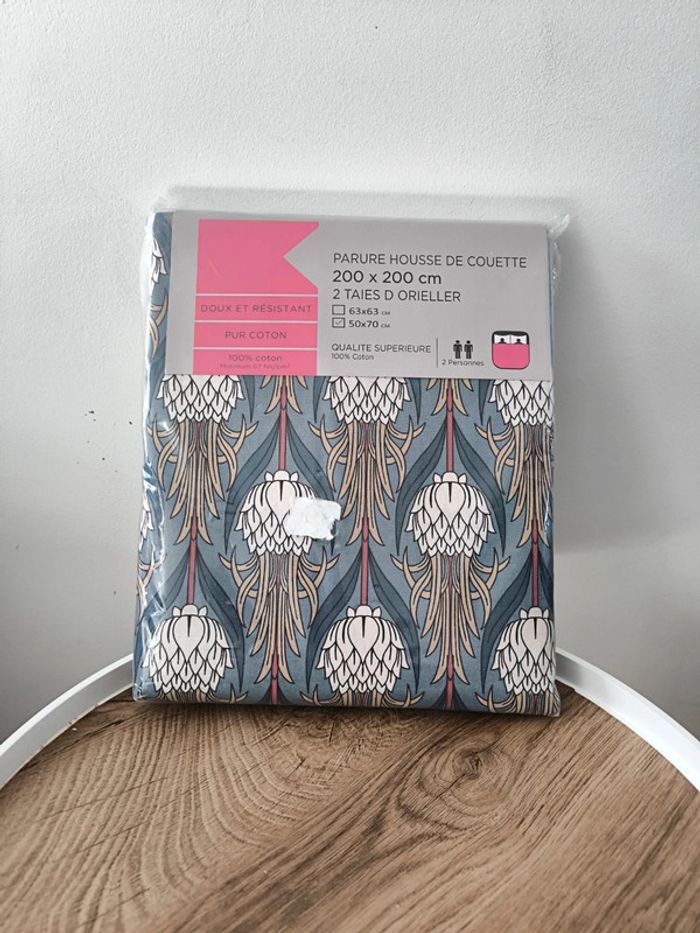 Housse de couette 200*200 avec 2 taies d'oreiller 50*70cm pur coton 67fils/cm2 #JLAlinge #JLAcaisse33
