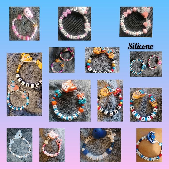 Création attache tétine, anneau dentition, attache doudou... silicone, disney.
