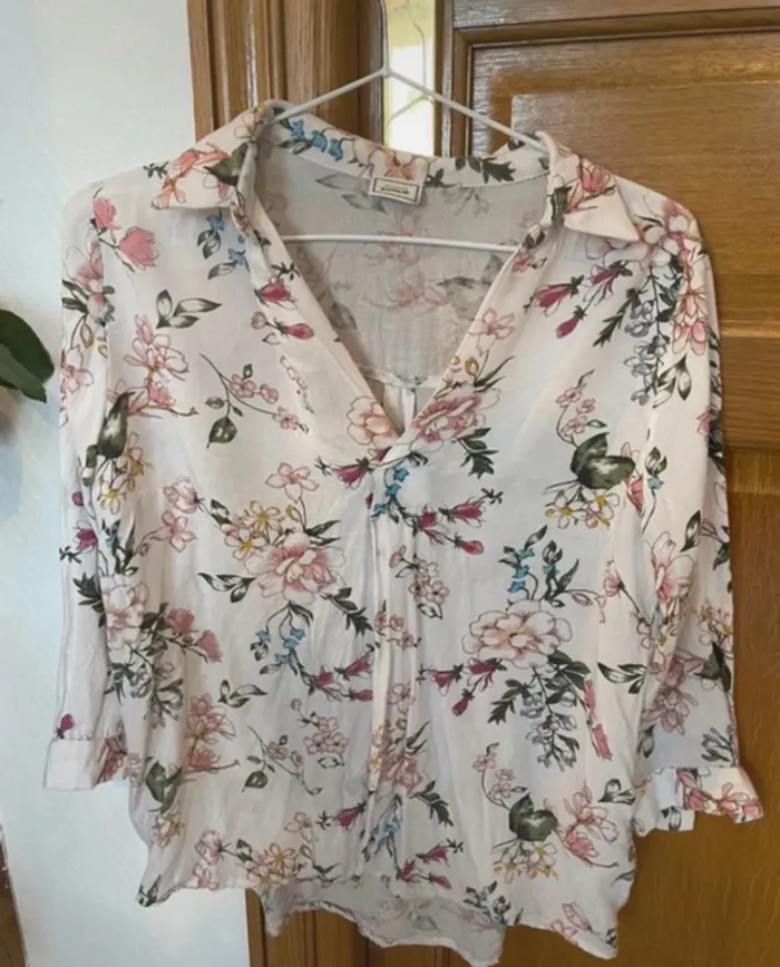 chemise blouse manches 3/4 impression fleurie de chez pimkie taille xs parfait état proche du neuf