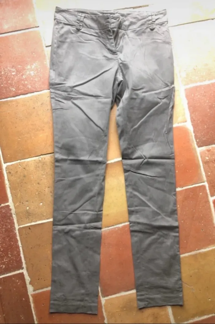 pantalon en coton de chez grain de malice taille 36 comme neuf couleur gris taupe coupe droite
