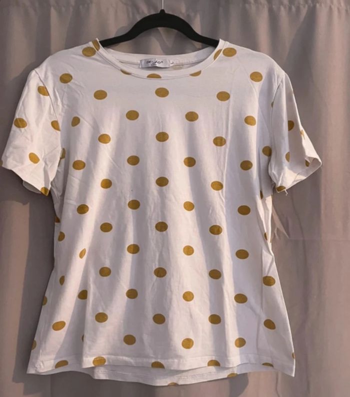 comme neuf teeshirt boutique indépendante taille L emi jo paris Motif pois jaune moutarde réduction activée des trois articles achetés 🌸
