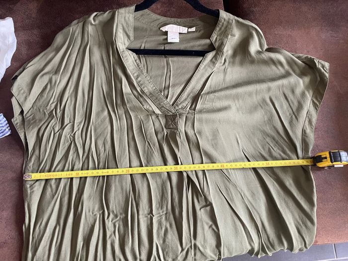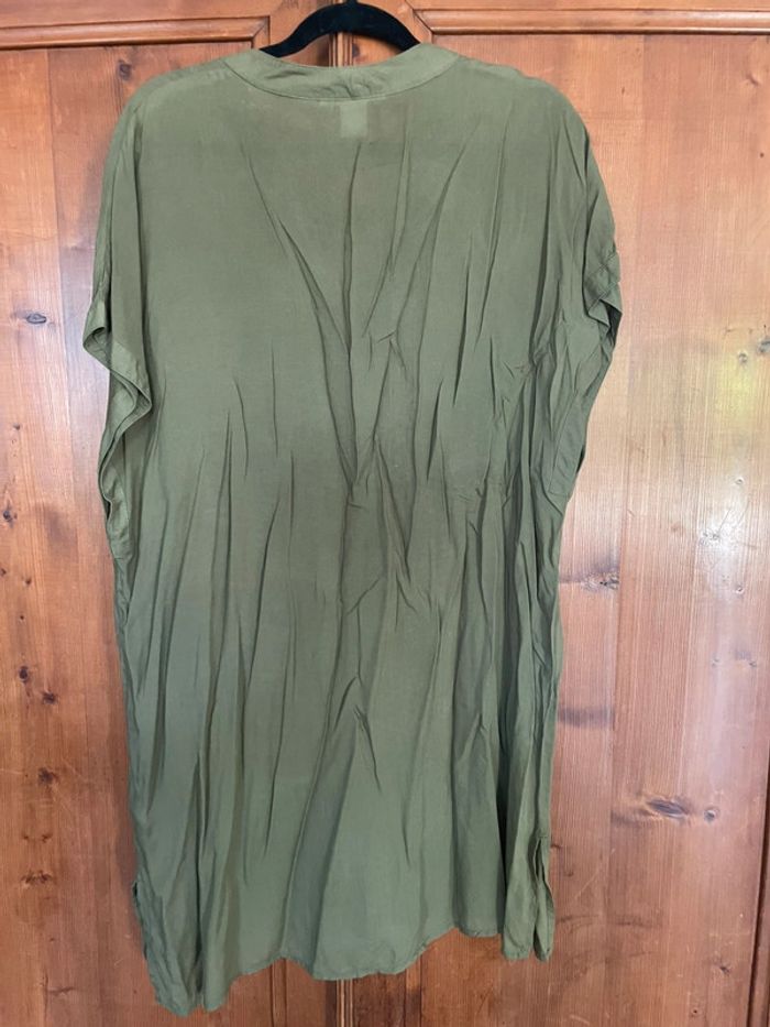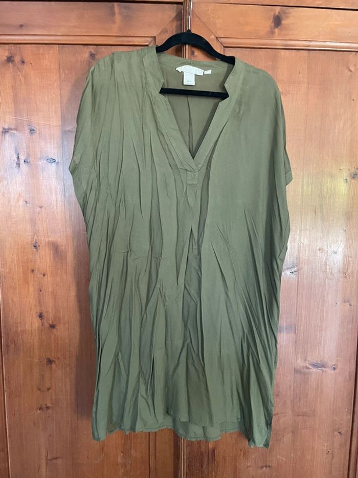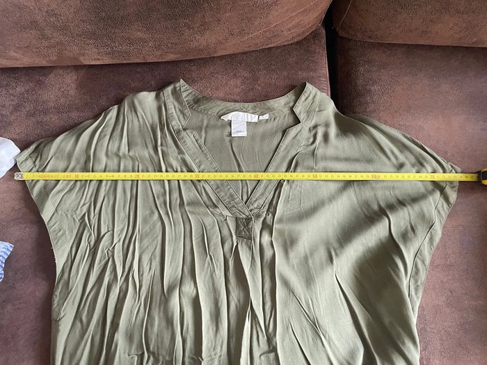 Robe tunique, kaki de chez H&M droite. Parfait état comme neuf taille 44. Longueur 90 Largeur épaules 74 voir photos