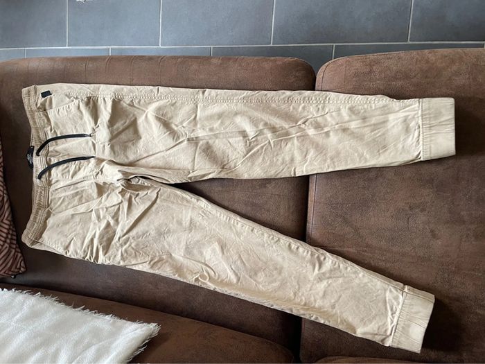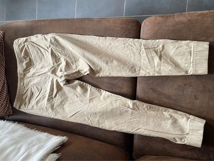 Pantalon pour homme de la marque Hollister Taille L Couleur beige serre aux chevilles taille élastique Mesure en photo comme neuf porté une fois