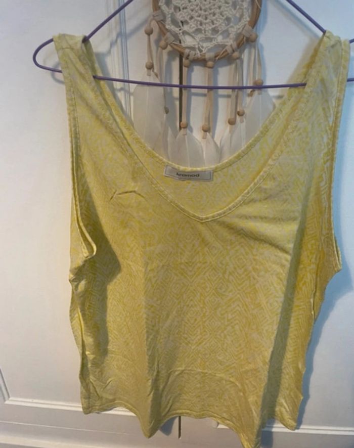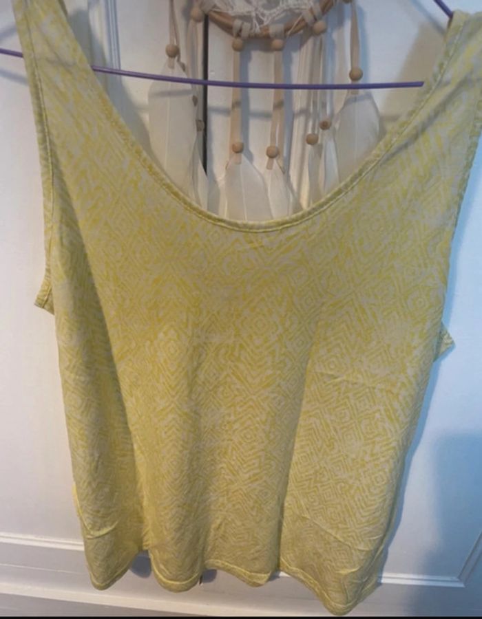 Taille xl débardeur comme neuf de chez promod motif asymétrique jaune pale et blanc