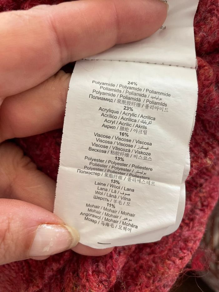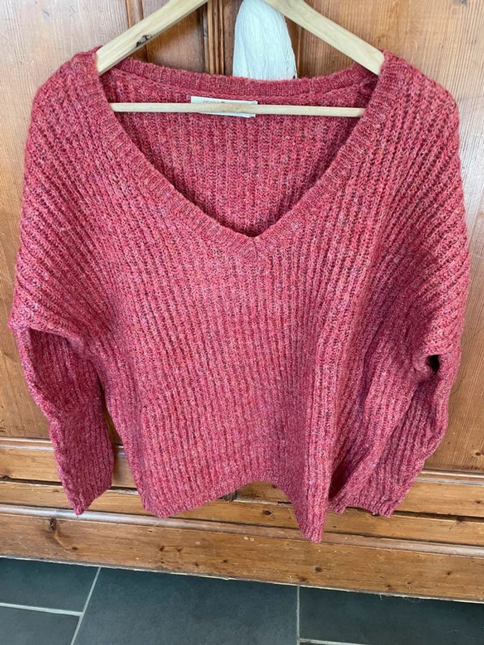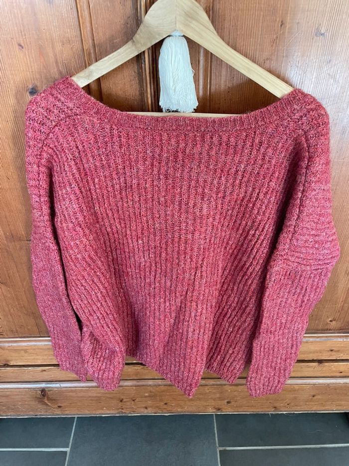 Pull grosse maille de chez cache cache taille 3 rose contient de la laine et du mohair voir composition en photo comme neuf porté une fois