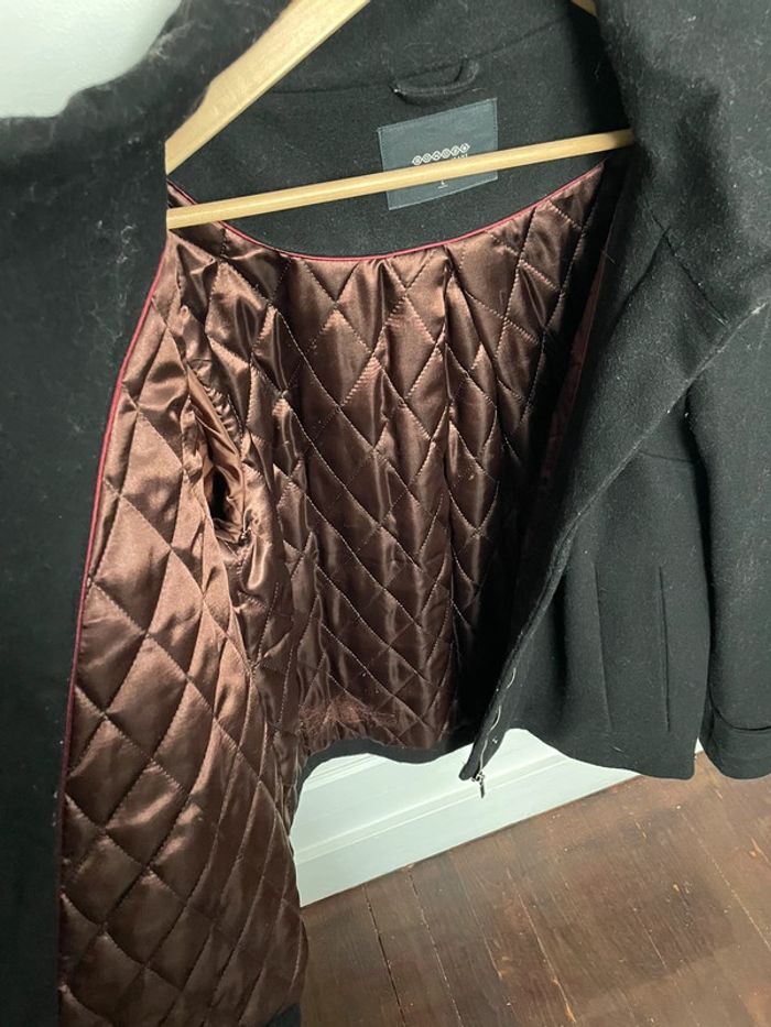Très beau manteau bien chaud de chez bonobo entièrement doublé taille L fermeture et pression forme vareuse et large à la taille arrive au niveau des fesses En parfait état