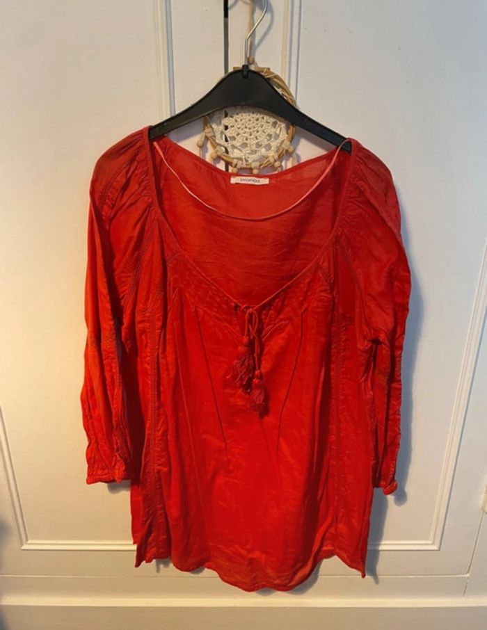 Taille 42 rouge blouse avec broderies esprit blême de chez promod comme neuve portée une fois En coton