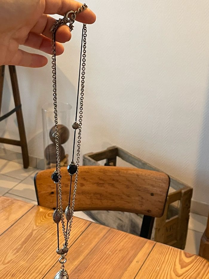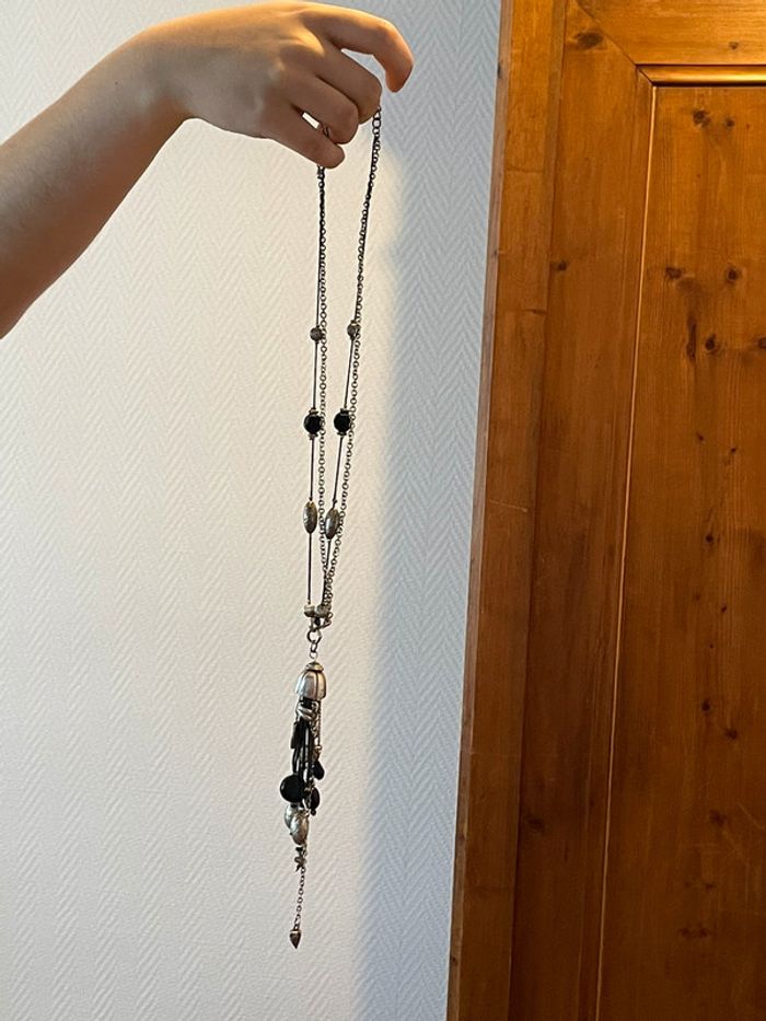 Grand sautoir femme acier et noir - photo numéro 2