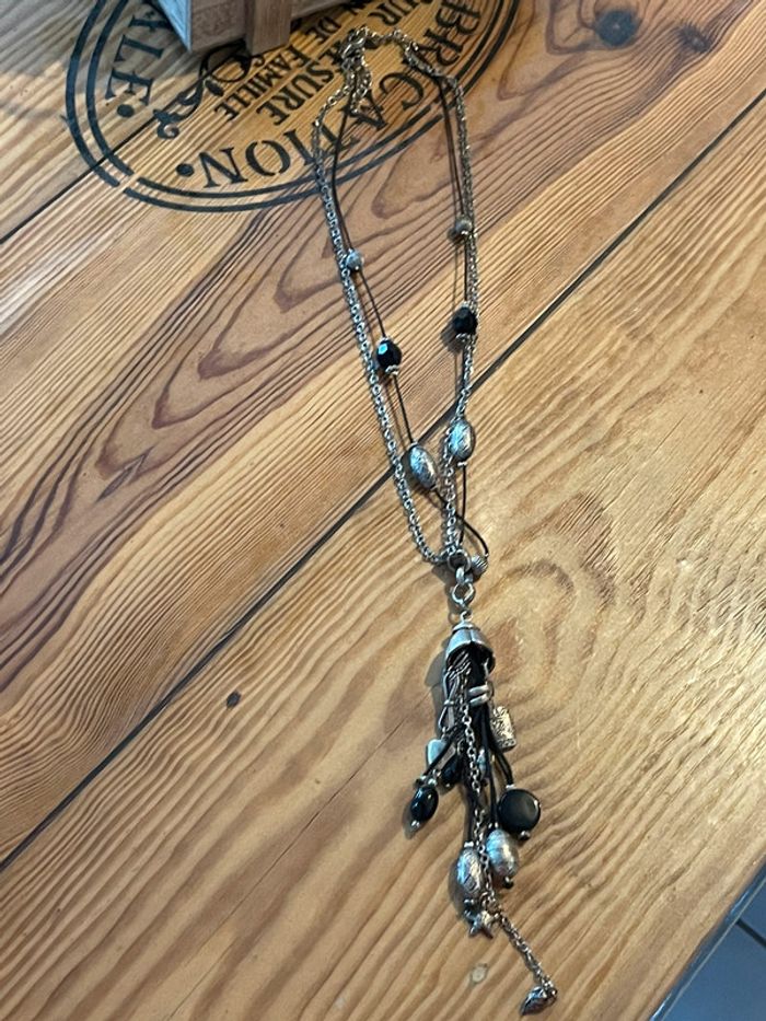Grand sautoir femme acier et noir - photo numéro 1