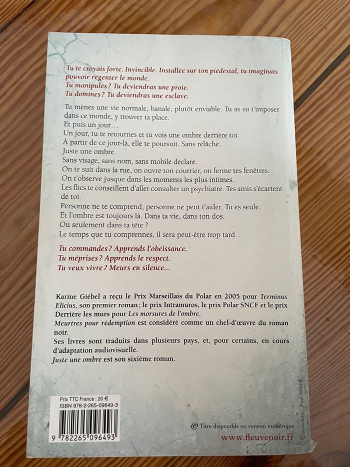 livre juste une ombre de karine Giebel réduction activée des deux articles achetés dans mon dressing