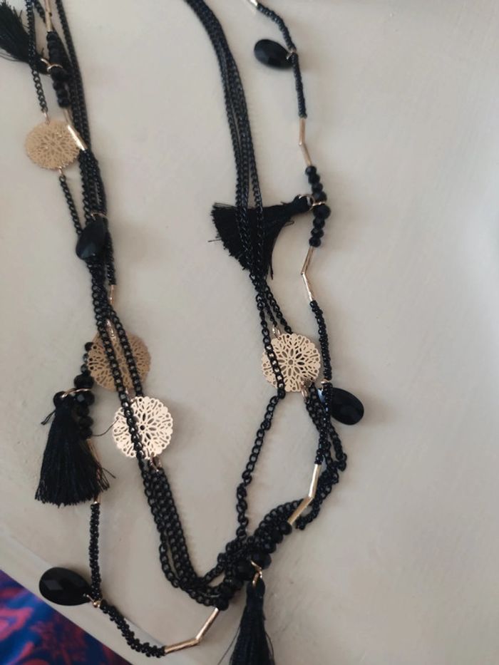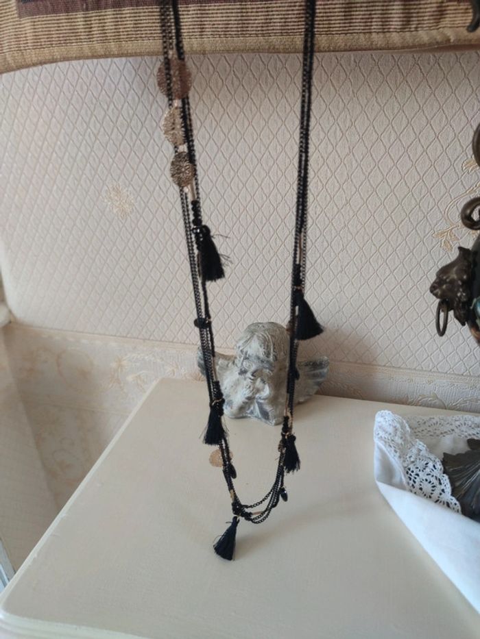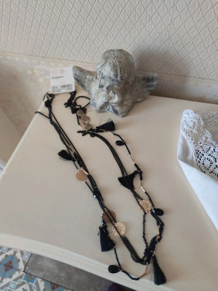 Long collier noir or neuf
