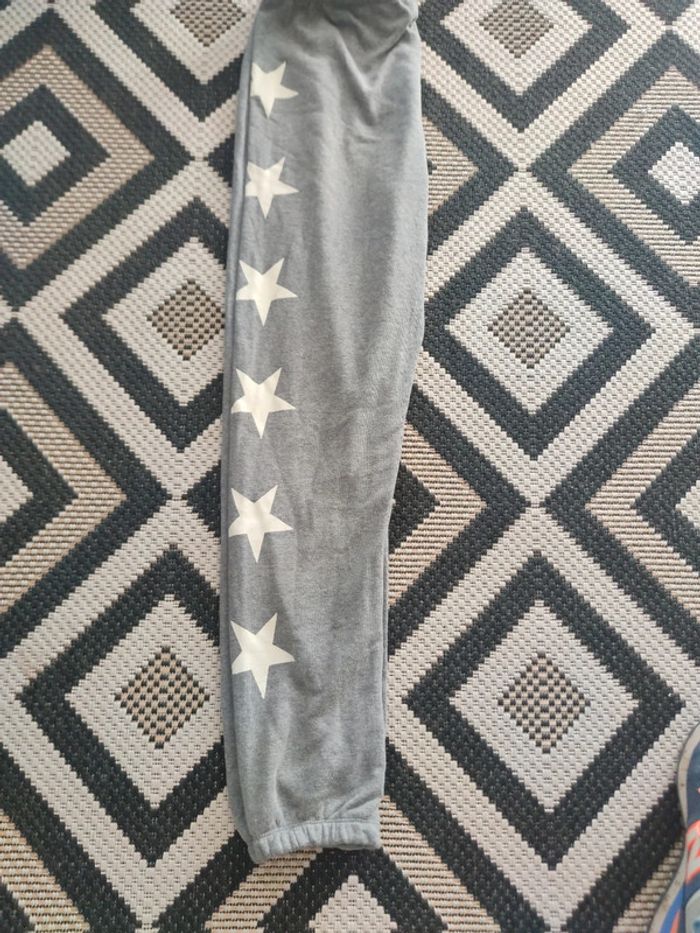 Bas de survêtement en coton noir Avec 6 étoiles sur le côté gauche Marque: Bloom+POP Taille: S Composition: 60% coton/40% polyester Longueur:100 cm Taille élastique et possibilité de serré avec la corde. #JLA36 Caisse 1