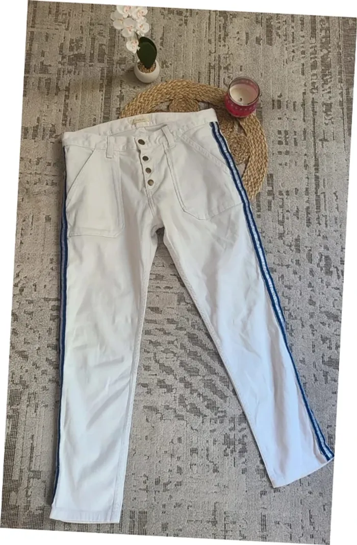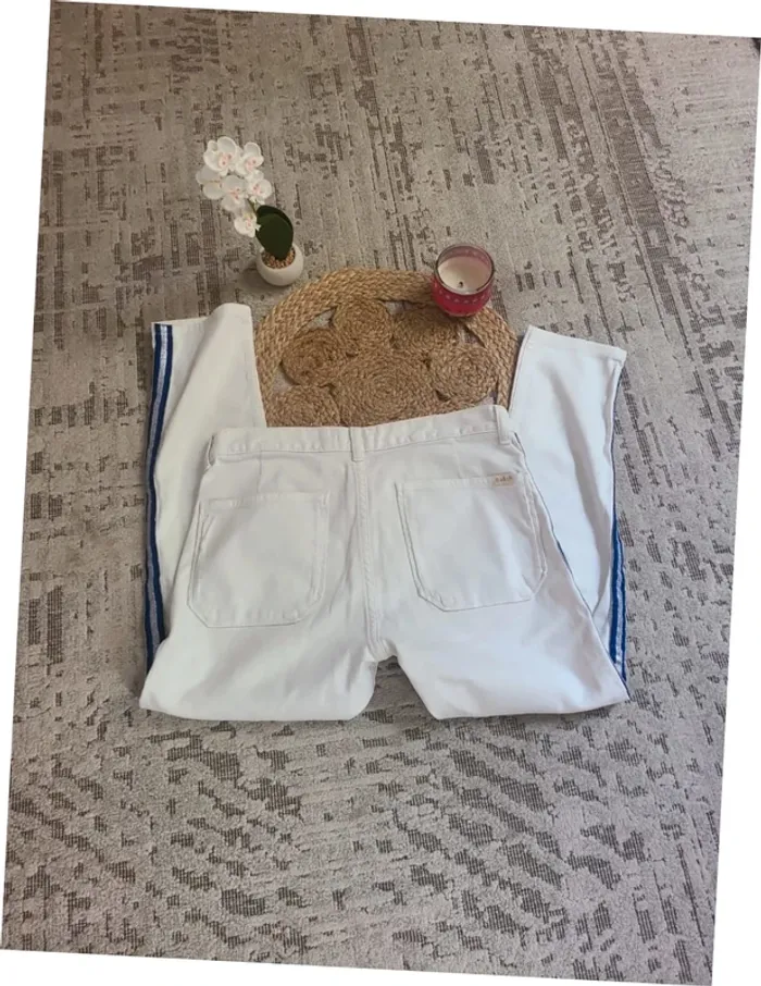 Jolie pantalon blanc avec rayures bleu sur coté #roxygirl40_pantalons_S_M