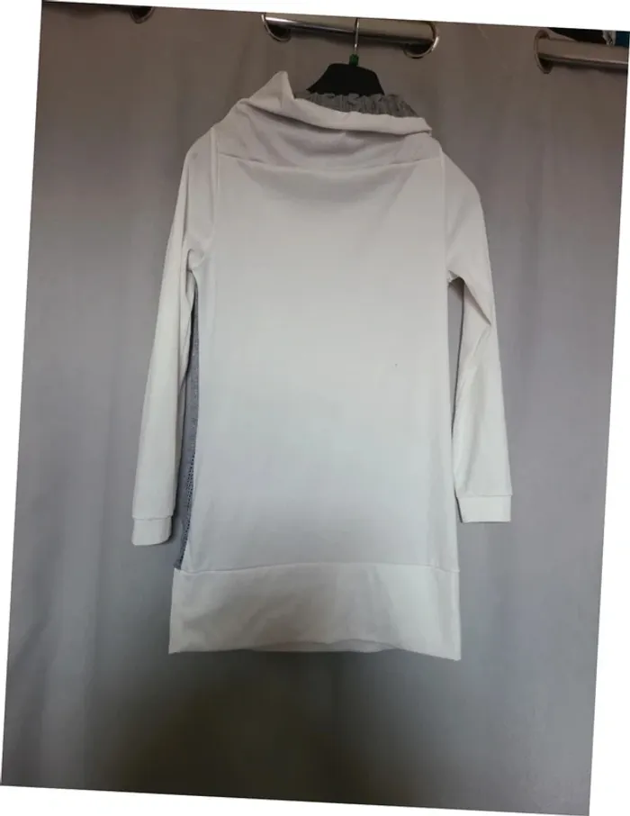 Très jolie tunique/robe moulante, de couleur blanc et gris.