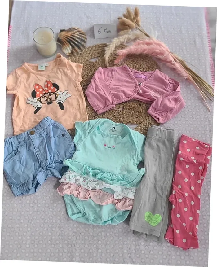 Lot 3 mois 2 leggings 1 short 1 t-shirts et une veste 1 bodys 1 culotte Divers marques #roxygirl40_3_6_9mois
