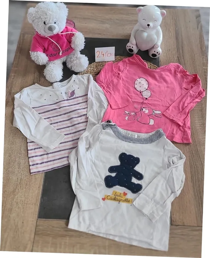 3 t-shirts manche longues Le blanc lulu petites taches grise (voir photos) Lulu castagnette, pat et ripatons, liberto #roxygirl40_fille2ans