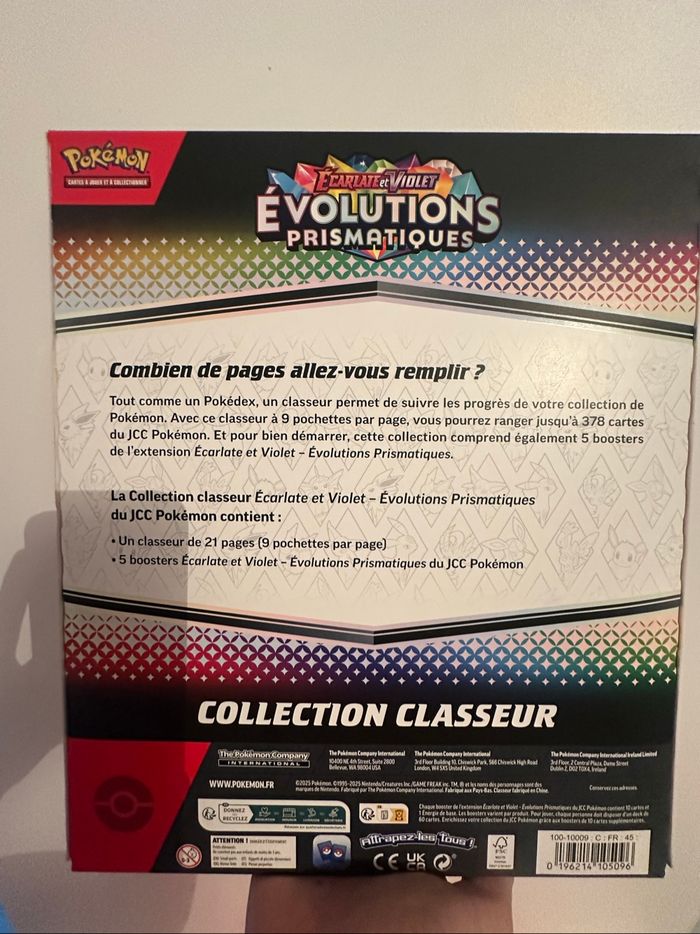 Je vends un coffret Pokémon Collection Classeur Évolutions Prismatiques (EV8.5), totalement neuf et scellé. Parfait pour ranger vos cartes et compléter votre collection de l’extension EV8.5.
