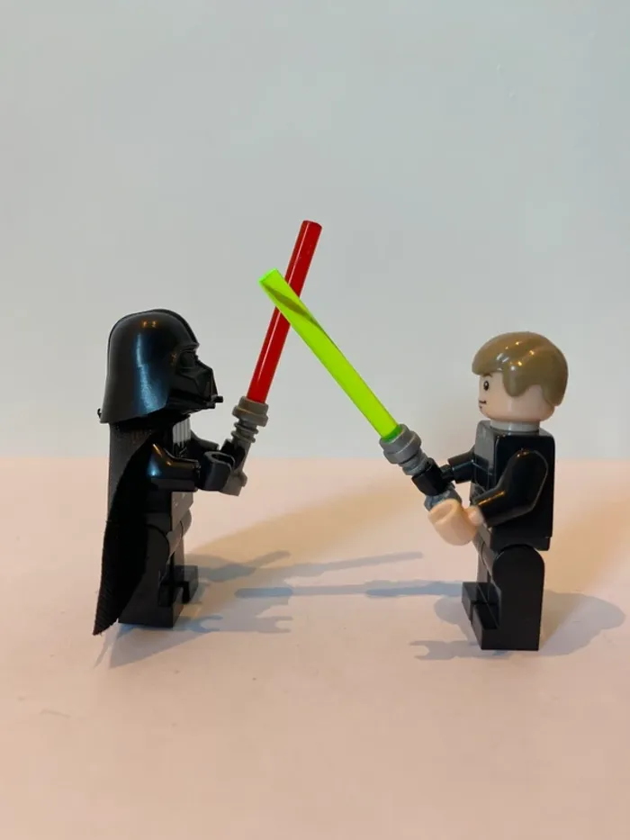 Figurine type lego Dark Vador et Jedi Luke Skywalker. Star Wars