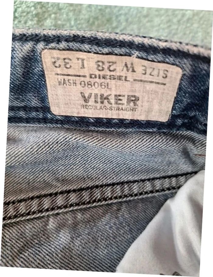 Jean Diesel W28 L32 Wiker regular straight, boutonnière un peu usée.