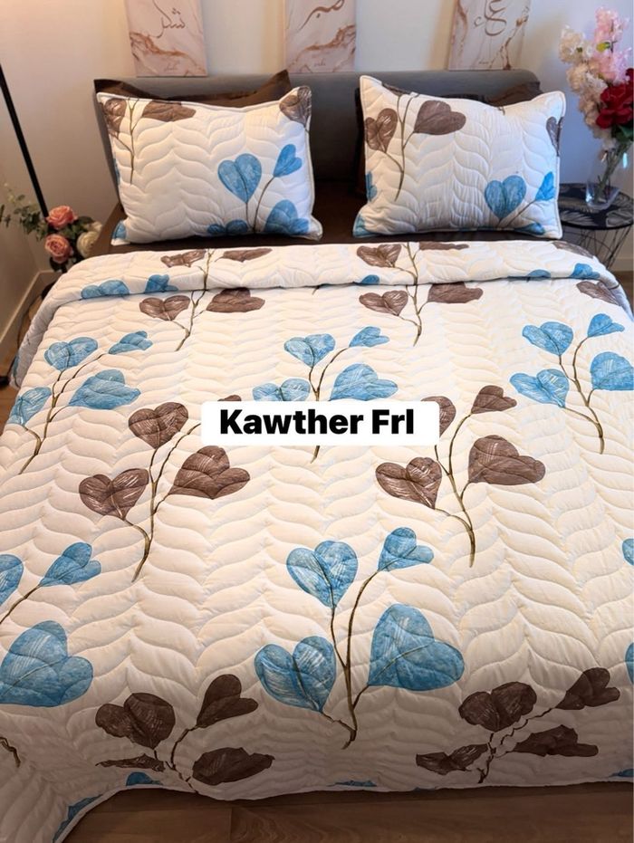 Bonjour Madame je vends couvre lit 6 pièces double face haute qualité les dimensions 160/200 180/200 drap housse couvre lit 240/250 les taie d oreiller 70/50 n hésitez pas me contacter merci