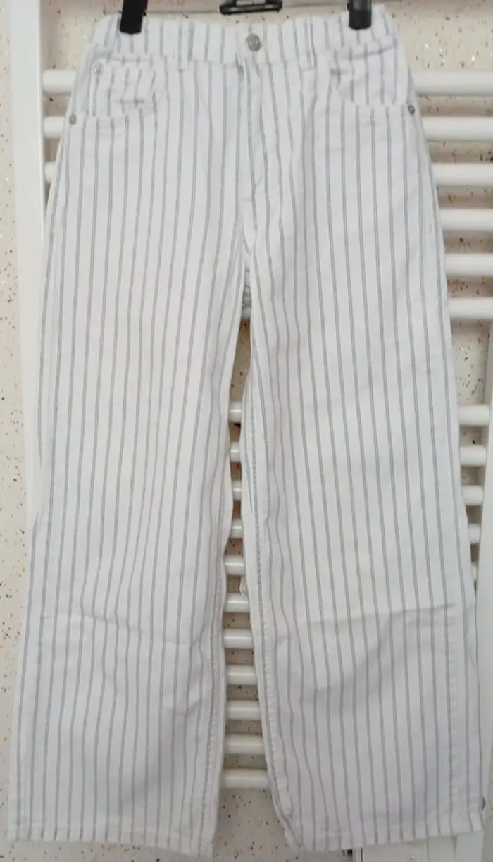Jeans blanc rayé bleu clair Zara Taille 9 ans #sycaro35 #sycaro359ans #taille9ans #jeans #blanc #bleuclair #zara B7112
