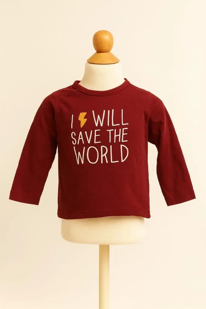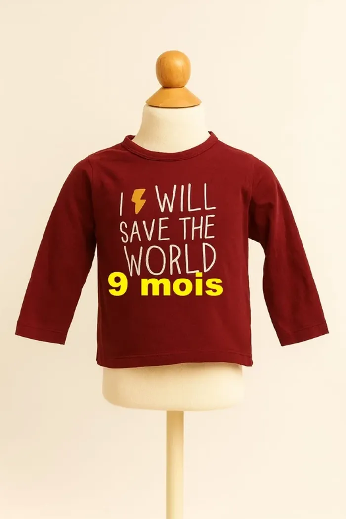 Tee shirt manche longue bordeaux imprimé blanc Kiabi Taille 9 mois #sycaro35 #sycaro359mois #taille9mois #teeshirt #bordeaux #blanc #kiabi B7206