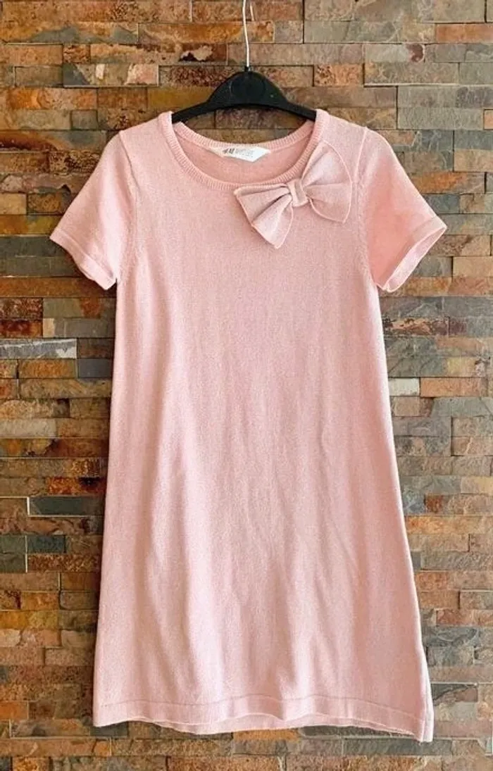 Robe fille 8/10 ans – Rose poudré avec petit nœud - photo numéro 1