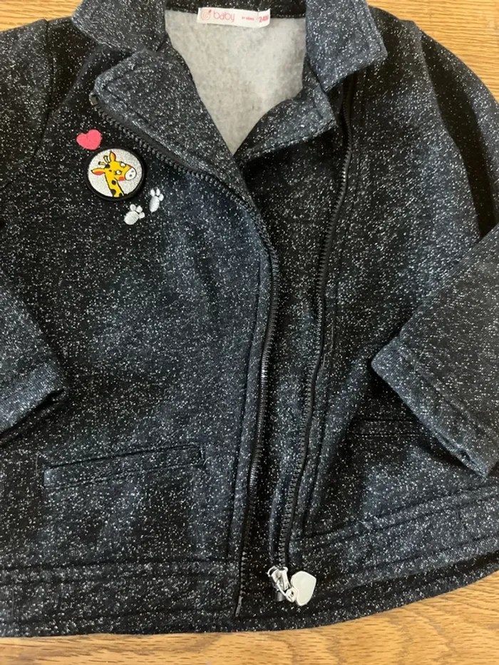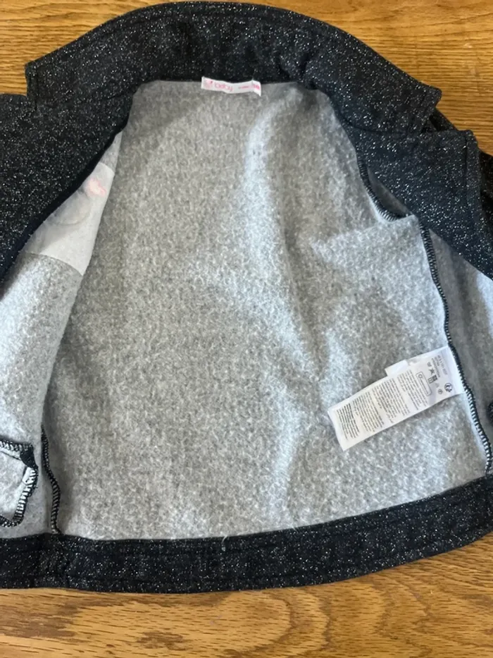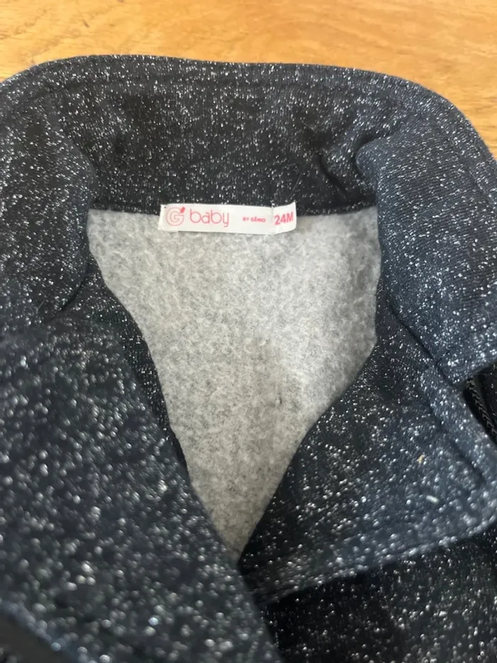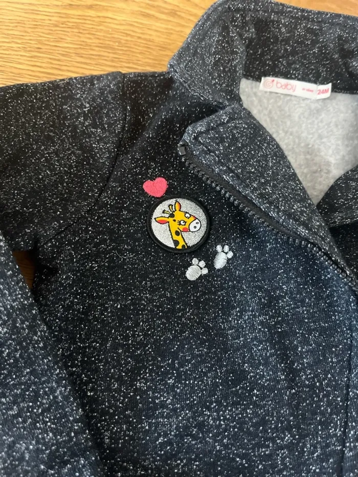 Veste chaude paillettes Noire Girafe 🦒 Zip en diagonale 24 mois