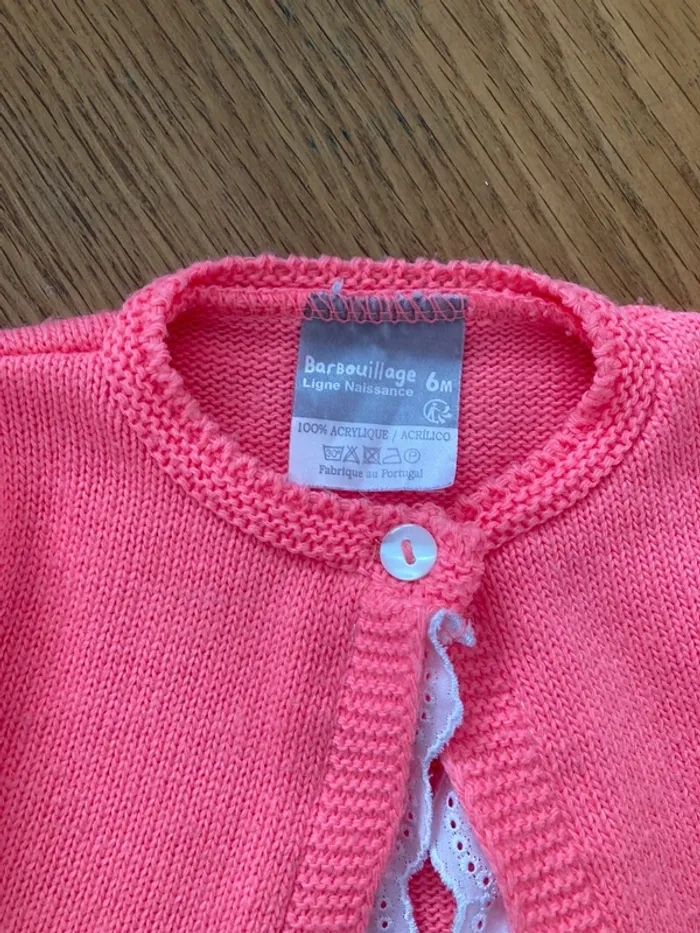 Gilet rose fluo dentelle 6 mois - photo numéro 1
