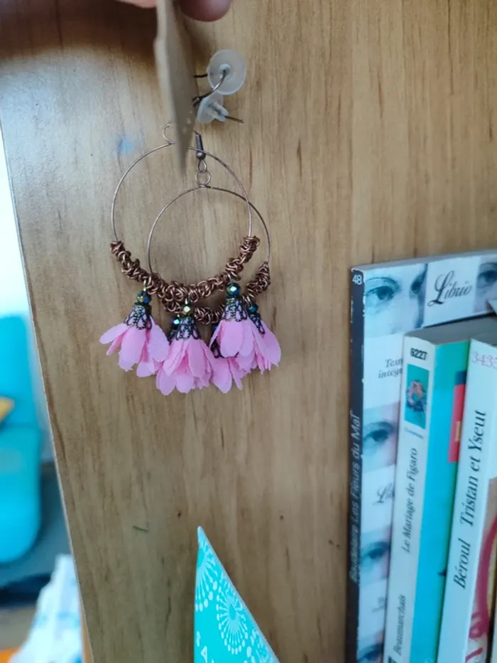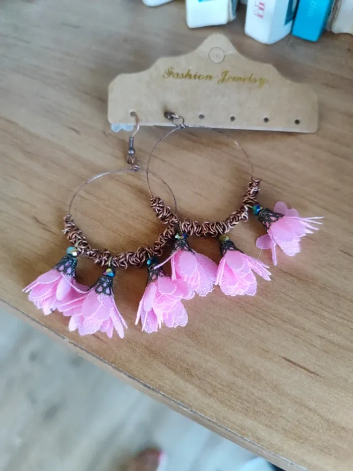 Boucles d'oreilles bohèmes neuves roses - photo numéro 1