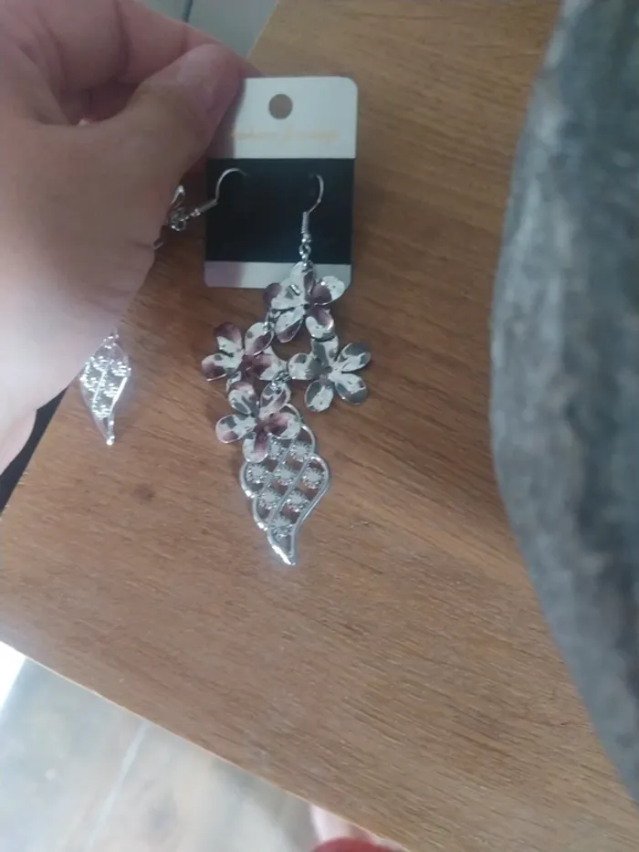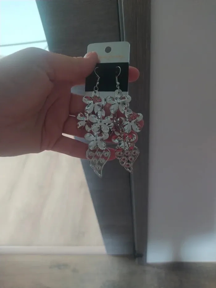 Paire de boucles d'oreilles pendantes Fantaisie argentée Emballage cadeau🎁 offert si demande #bijoux_alexia330