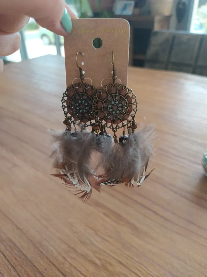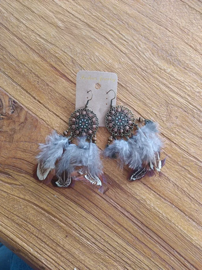Boucles d'oreilles plumes neuves - photo numéro 3