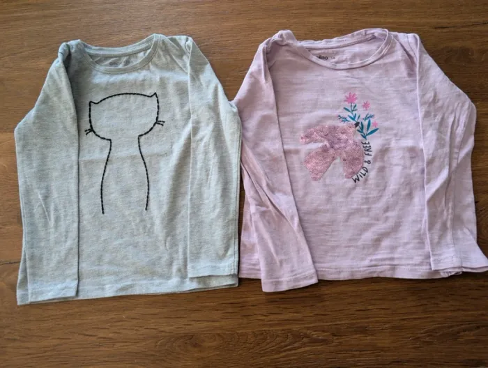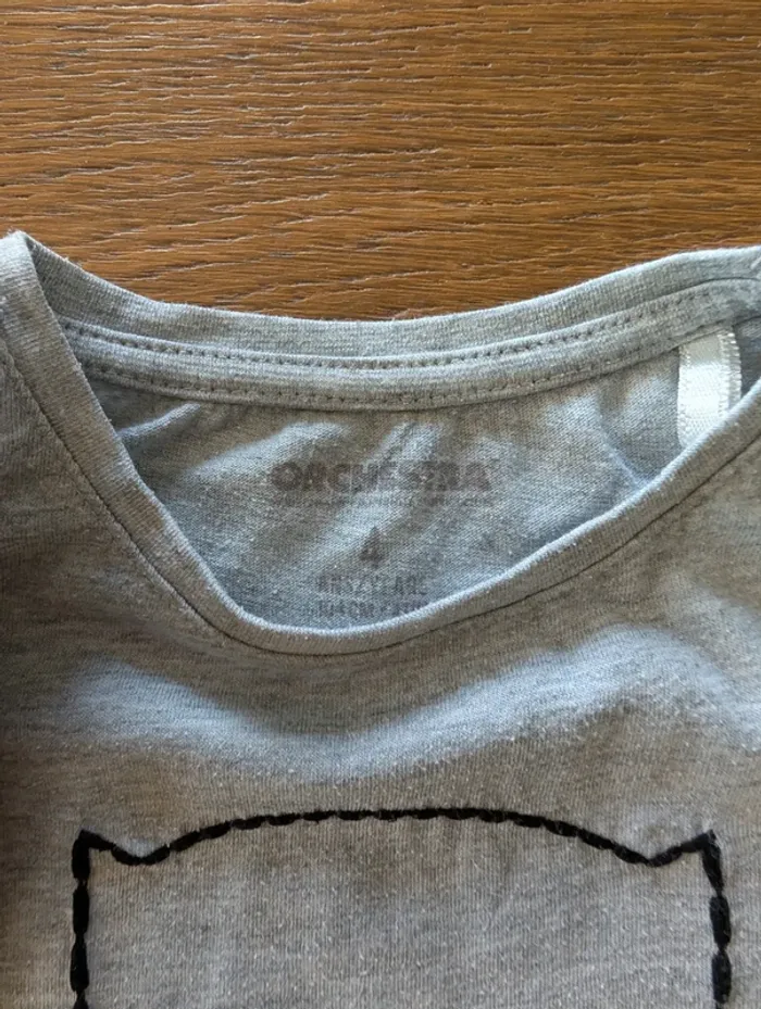 2 tee-shirts à manches longues, taille 4 ans, marques Orchestra et Gémo. En très bon état.