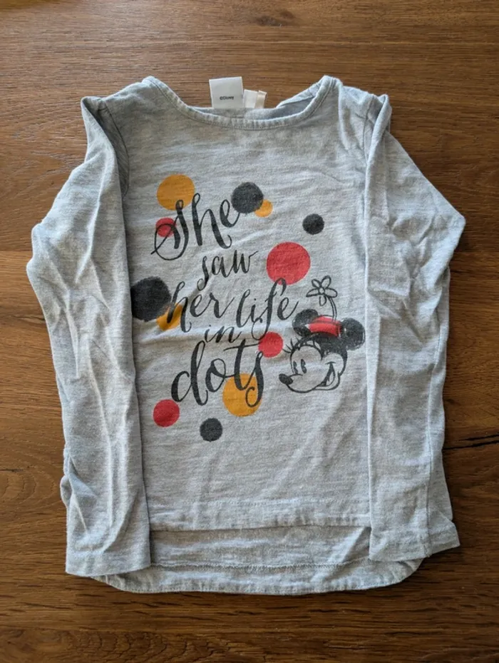 Tee-shirt à manches longues, marque Disney, taille 5 ans, en très bon état.